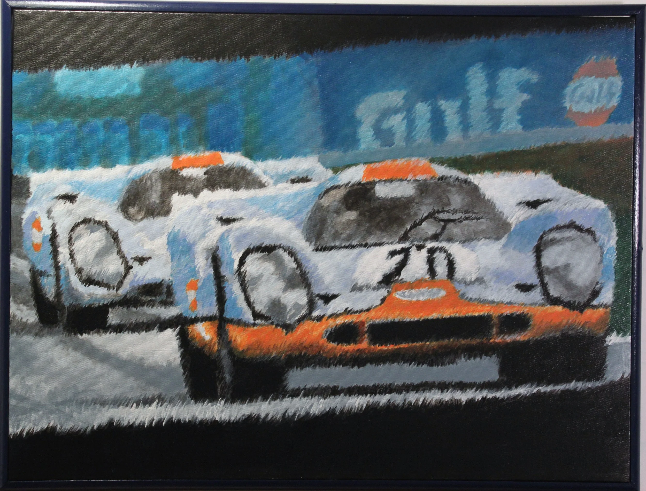 I was woking for the effect of brutal strength, raw power and loud noise as the two Gulf-Wyer 917 Porsches "Duke it Out".